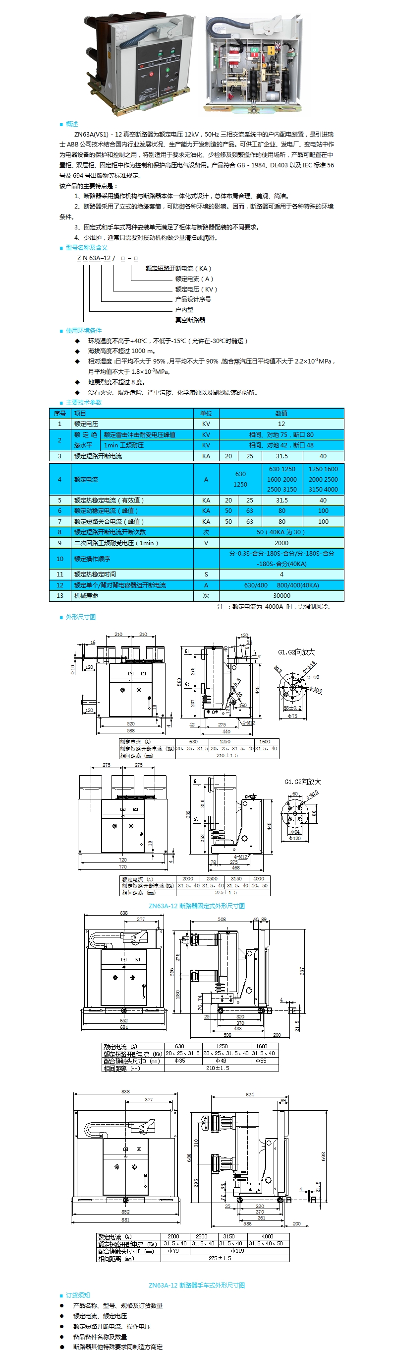 | ZN63A(VS1)-12型戶內高壓真空斷路器 | |