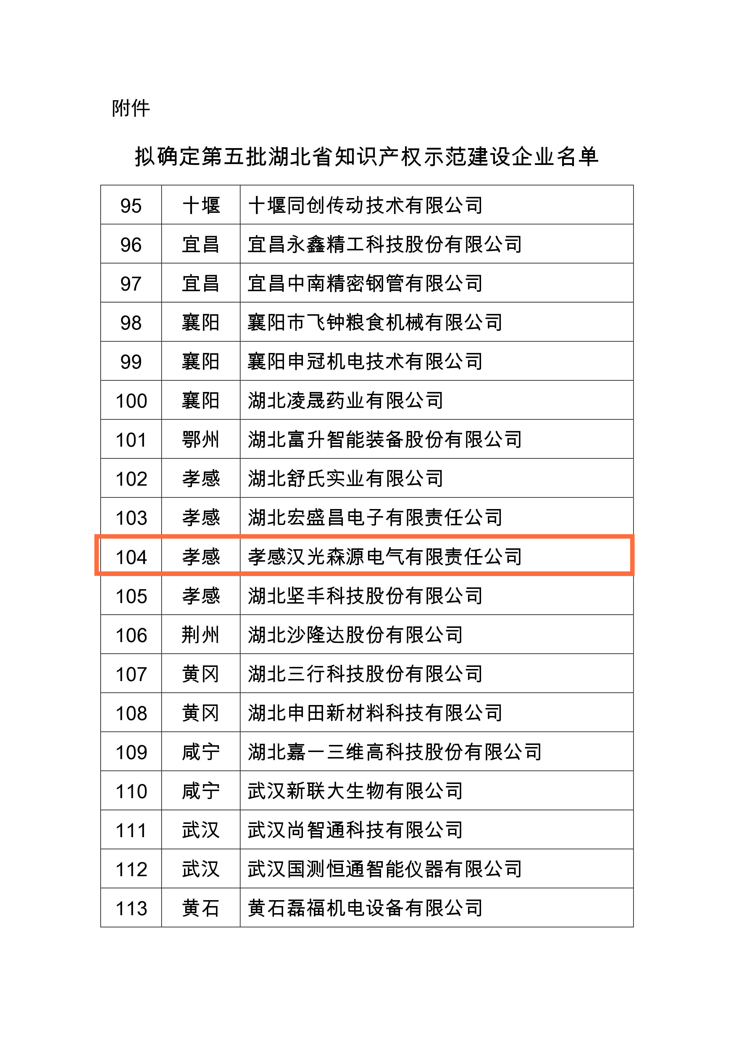 熱烈慶賀孝感漢光森源電氣有限責(zé)任公司擬確認(rèn)為第五批湖北省知識(shí)產(chǎn)權(quán)示范建設(shè)企業(yè),并喜獲5萬(wàn)元獎(jiǎng)勵(lì)金。